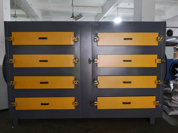 3、對于大風量、低濃度的有機廢氣處理,活性炭一般采用較大的排列面積和較低的床層厚度,以獲得較大的氣體流通截面、較小的風阻和合適的吸附容量。